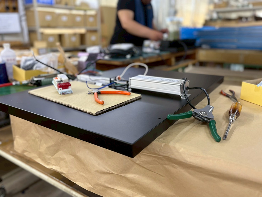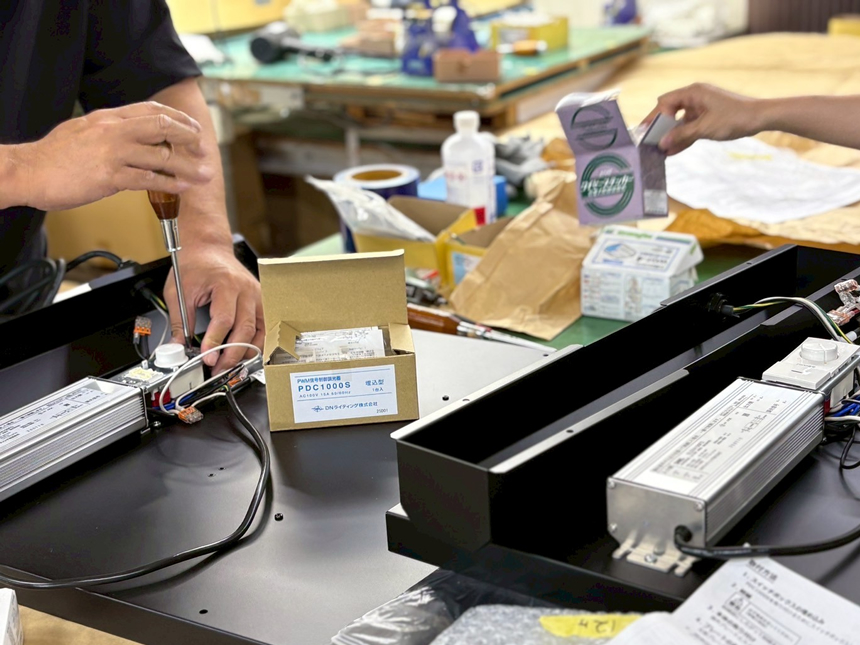 あかり創造カンパニーです。いつもブログを読んでくださいましてありがとうございます。何回目かになりますが、自社内での組み立ての様子を少しばかりご紹介いたします。